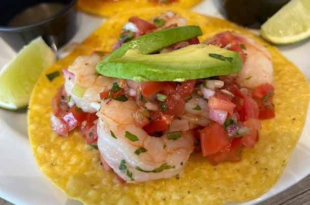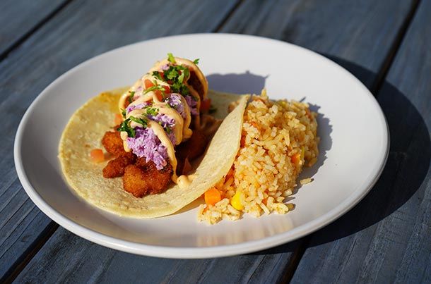 Mahi-mahi or shrimp, rice, lettuce, spinach, tomatoes, avocado, cabbage..........20