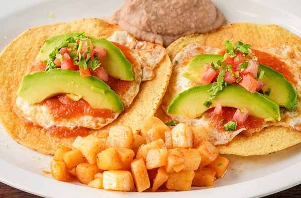 Two fried eggs on fried con tortillas in ranchero salsa..........12