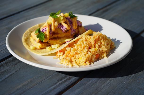 Grilled mahi, pineapple, cabbage, cilantro, chipotle sauce..........7