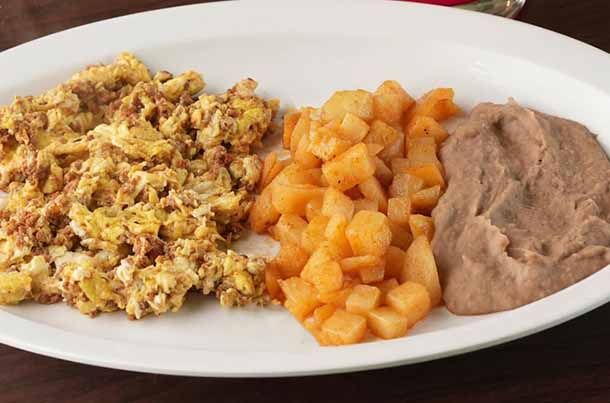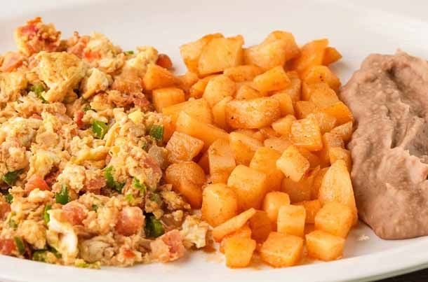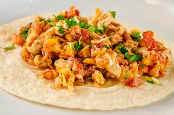 corn tortillas strips scrambled with eggs, onions, queso fresco..........12