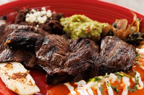 Steak or chicken, black beans, rice, tomatoes, lettuce, corn, spinach, cotija cheese..........18